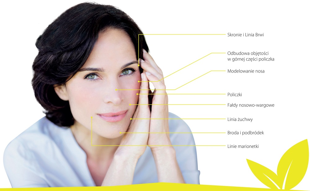Ellansé™ rekomendowany jest do korekcji następujących okolic: fałdów nosowo-wargowych, linii żuchwy, linii marionetki, brody i podbródka, nosa, policzków, skroni, brwi.