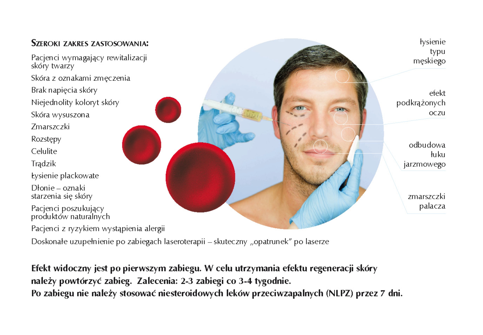 BEZPIECZEŃSTWO: Osocze bogatopłytkowe pozyskane jest fizjologicznie, otrzymujemy je z komórek własnego organizmu. Podając własne osocze unikamy ryzyka alergii, redukujemy ryzyko infekcji. Nie istnieje również ryzyko pojawienia się mutacji, ponieważ czynniki wzrostu znajdujące się w pozyskanym osoczu nie wnikają do komórek, dzięki czemu nie mają wpływu na właściwości DNA tych komórek.