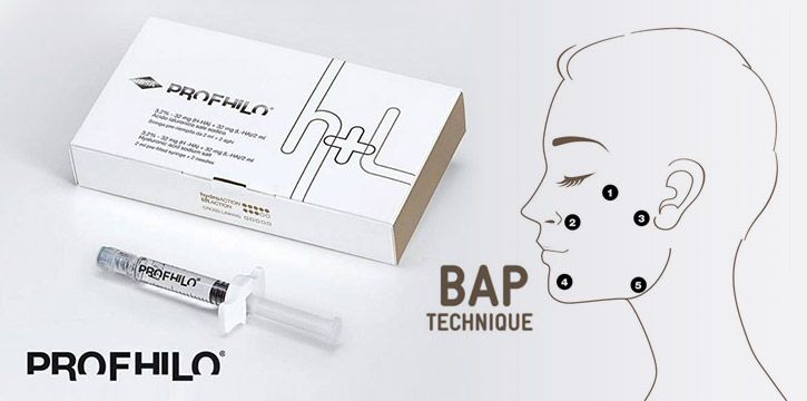 BAP Technika (Beauty Aesthetic Points) to pięć specjalnie opracowanych Bio Estetycznych Punktów iniekcji na twarzy, które pozwalają na pełniejsze zatrzymanie procesu starzenia. Zostały wybrane przez badaczy IBSA w odpowiedniej odległości od struktur żylnych i dużych gałęzi nerwowych w celu zminimalizowania ryzyka powstawania krwiaków, siniaków, ucisku lub bólu podczas iniekcji. Technika BAP zarezerwowana do iniekcji preparatu PROFHILO® zapewnia doskonałą dyfuzję preparatu i nadaje odpowiedni efekt rusztowania i wysmuklenia twarzy.